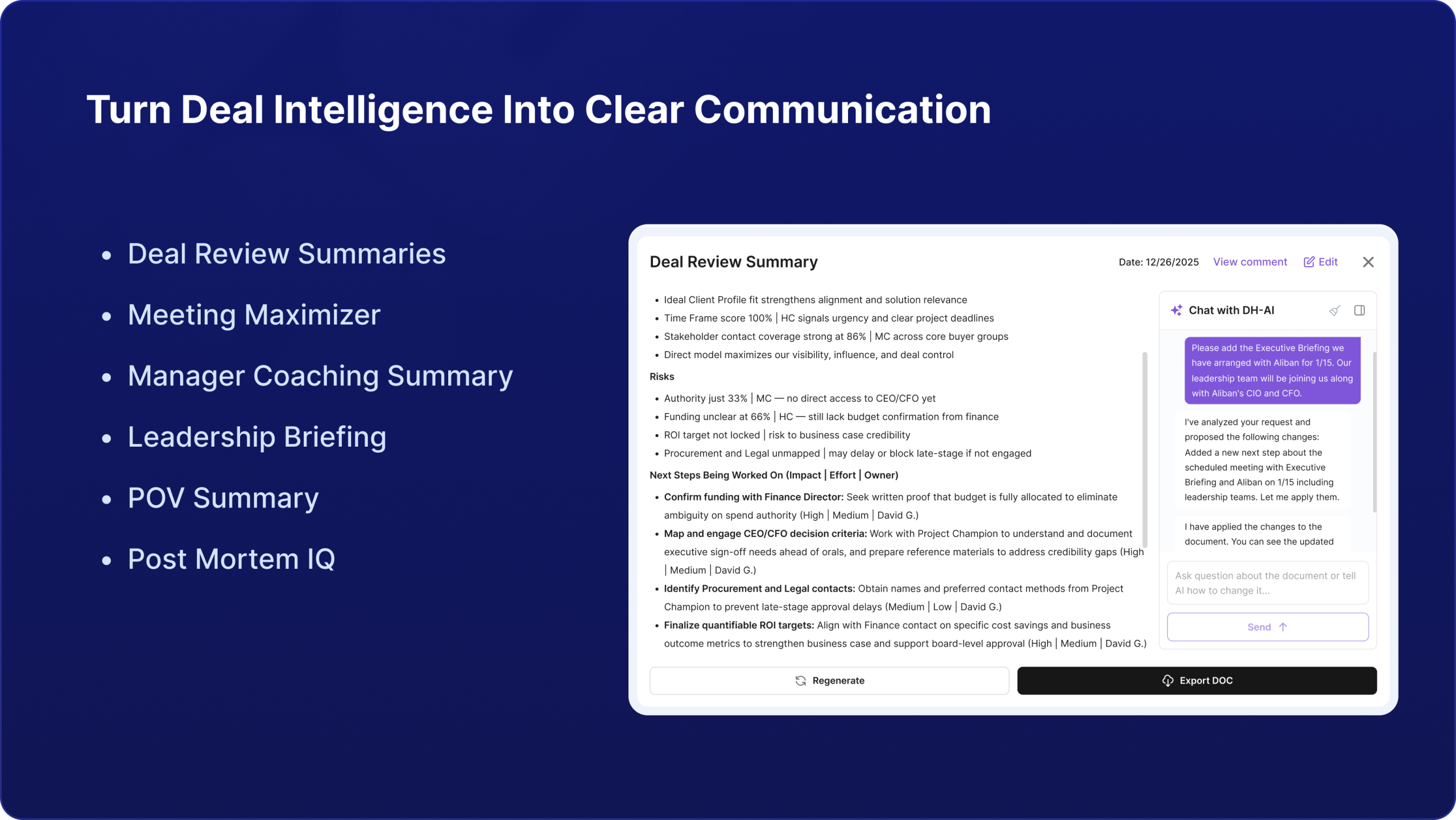 The Result: Immediate, actionable insight that turns deal reviews into deal wins.